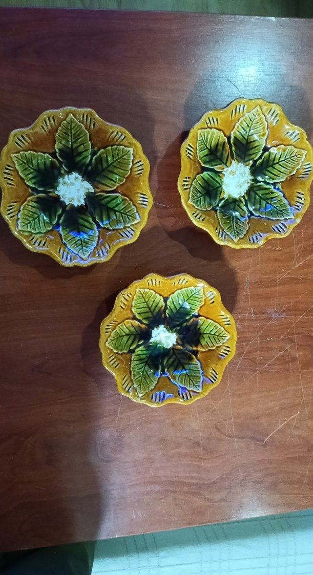 kahverengi renkte, yeşil yapraklar ve beyaz çiçek detaylı çiçek desenli renkli kâse seti.