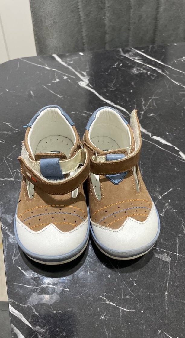 Kahverengi, bağcıklı ve kauçuk tabanlı erkek çocuk ilk adım ayakkabısı, trend sokak stili için uygun.
