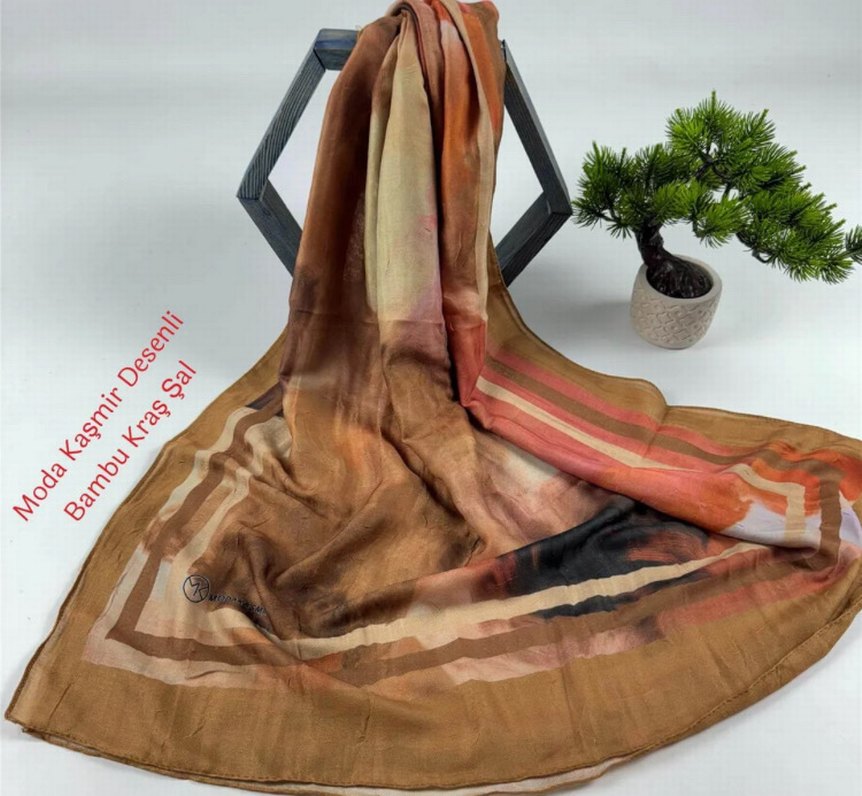 Kahverengi, ipek görünümlü ve drapeli bohem tarzı kadın şal, modayı takip edenler için şık bir seçenek. MARKA TEMSİLİDİR