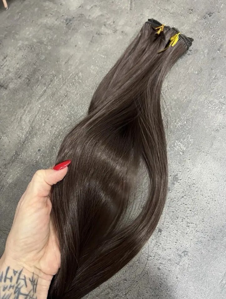 İpek gibi kahverengi saç postişi çıtçıtı
