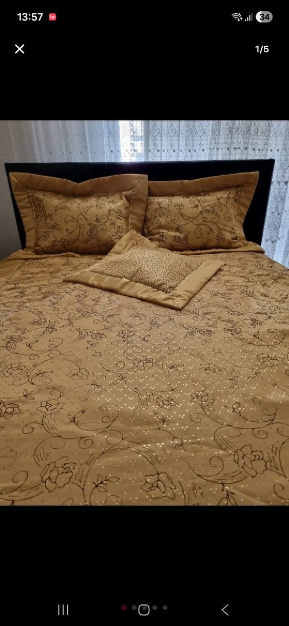 Kahverengi İşlemeli Parlak Yatak Örtüsü