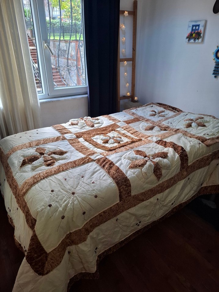 Kahverengi İşlemeli Yatak Örtüsü