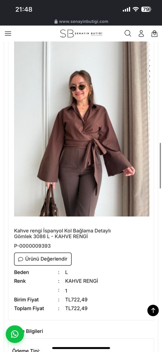 Kahverengi ispanyol kol bağlama detaylı, kemerli, V yaka gömlek. Normal boy ve regular fit ile ofis stiline uygun.