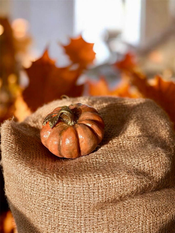 Kahverengi, dokulu yüzeye sahip kabak figürü, sonbahar dekorasyonları için ideal.