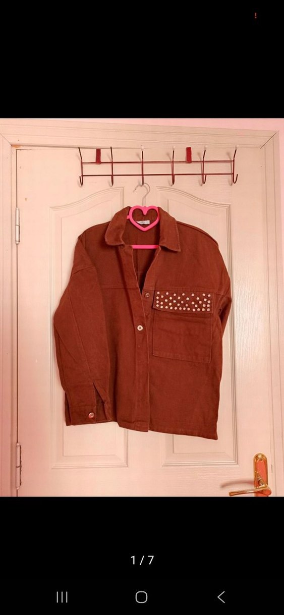 Kahverengi kadife kumaştan, düğmeli, uzun kollu ve notalı yaka detaylı, cepleri zımbalı salaş kesim kadın gömlek. Casual tarzda kullanıma uygun. KOT
