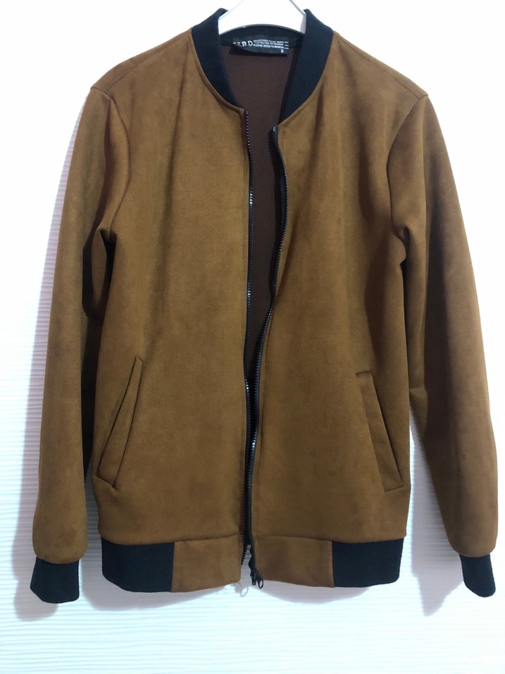 Kahverengi Kadife Fermuarlı Erkek Ceket