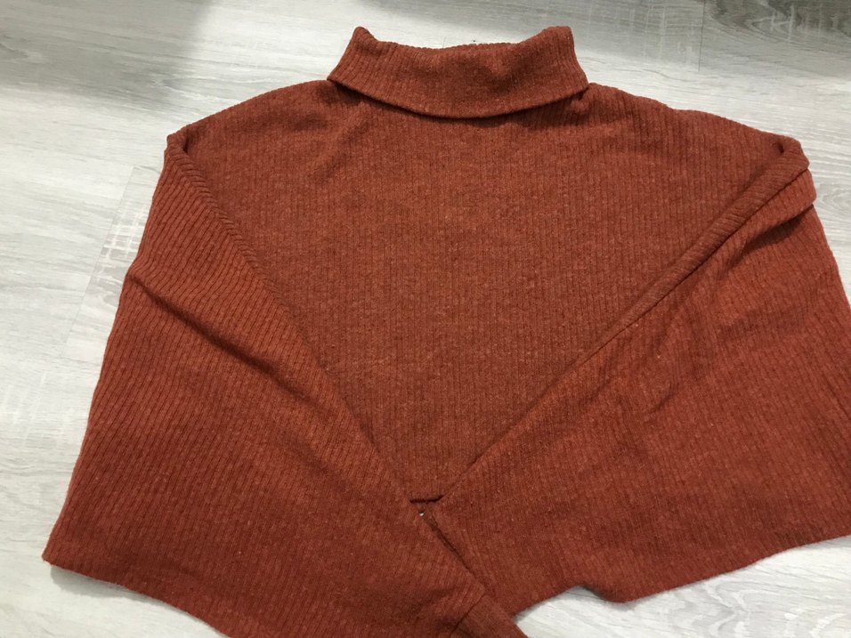Bu kahverengi boğazlı kadın kazak, yün örme kumaştan yapılmış, dar kesim ve uzun kolludur, günlük kullanıma uygun sade ve rahat bir stildir.