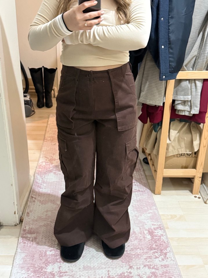 Kahverengi Kadın Bol Kesim Midi Kot Pantolon