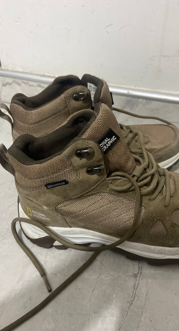 Kahverengi kadın outdoor botları, kauçuk tabanlı ve Velcro bantlıdır. Rahat ve trend sokak stili için uygundur.
