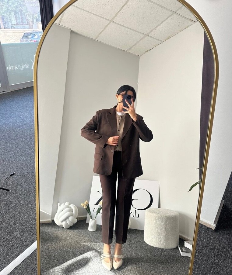 Kahverengi, , ipeksi kumaştan, normal boyda ve rahat kesim, ofis için uygun.muadil