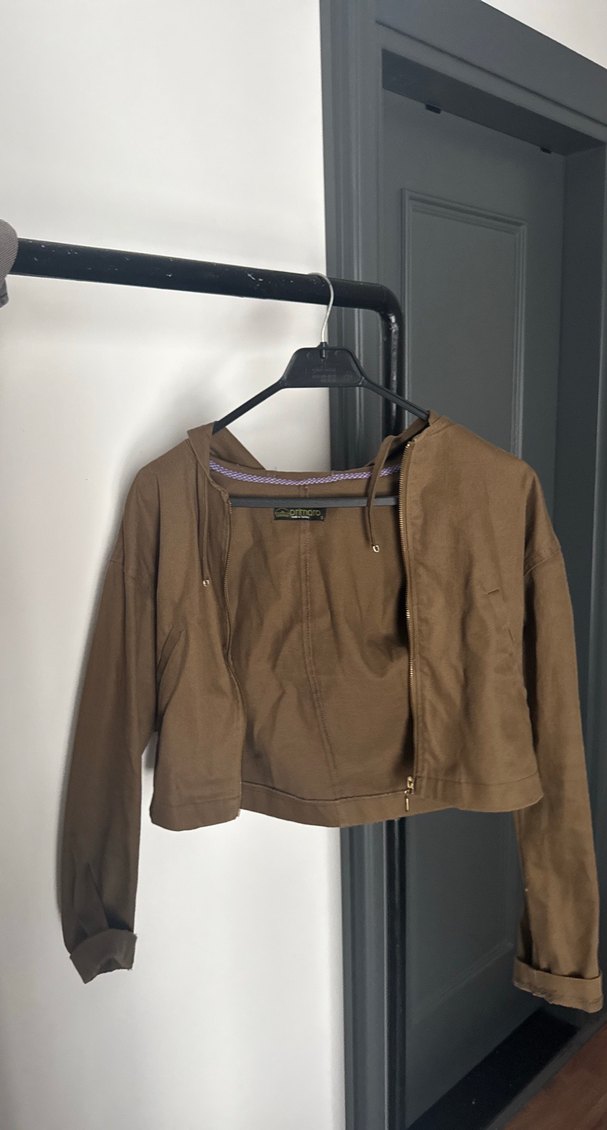Kahverengi süet kumaştan, uzun kollu, kemerli ve normal boyda kadın ceket. Notlu yaka ve salaş kesimiyle günlük rahat stil sunar.