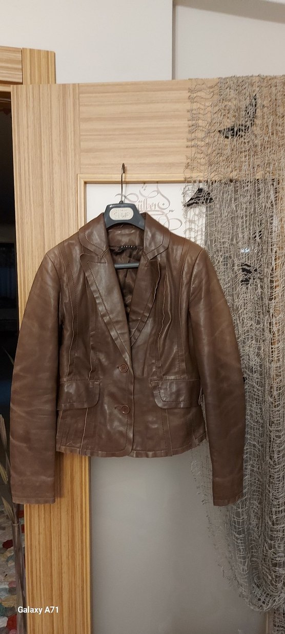 Çok giyilmiş,sol cebinde yırtılma olmuş,yapıştırılmış,çok belli olmuyor.Bazı yerlerinde solmalar var,eskitme gibi aslında ama boyatılabilir.Tasarım,yumuşacık bir derisi var.İtalyan 40 beden yani 36 beden,38 bedene de olur.Rengi,modeli,derisi efsane.