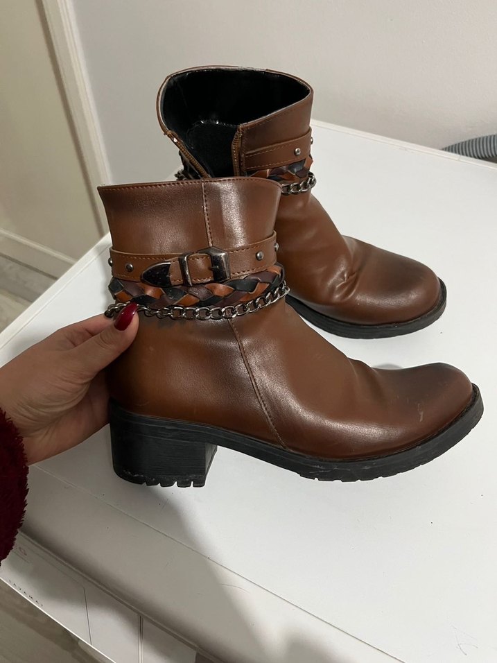 Kahverengi Kadın Deri Tokalı Biker Bot