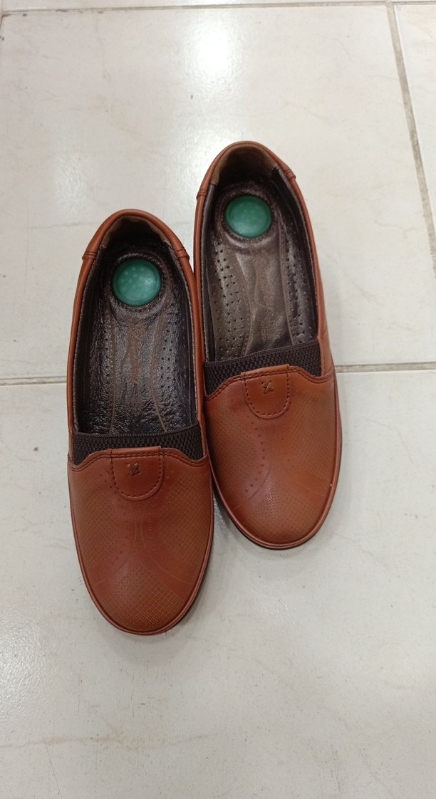 Kahverengi, düğmeli detaylı, dolgu topuklu kadın günlük ayakkabısı. Kauçuk malzemeden yapılmıştır ve minimalist stile sahiptir.