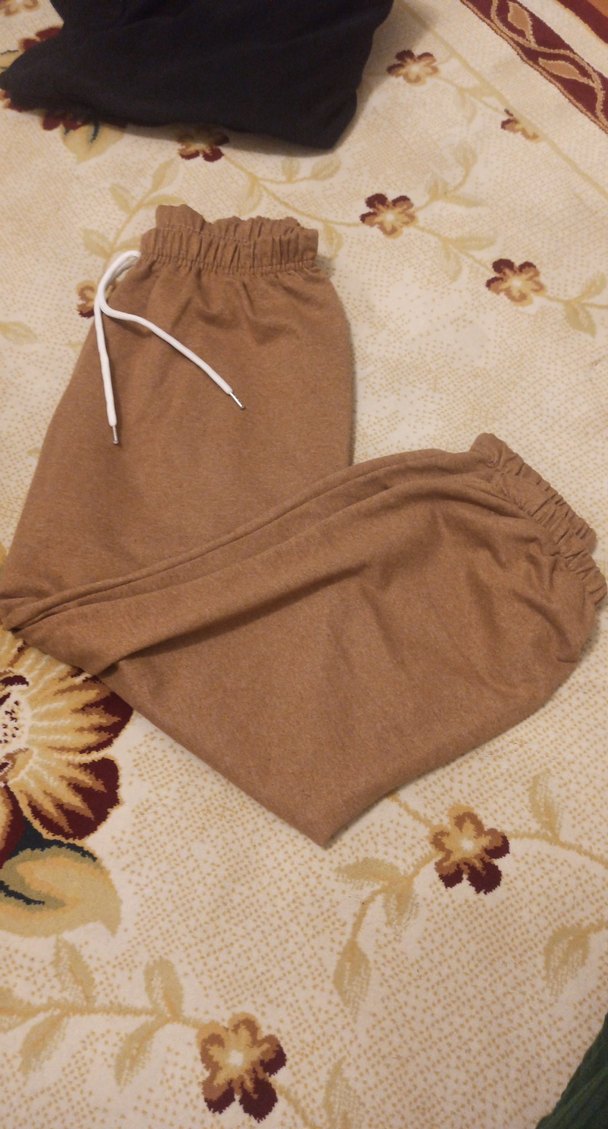 Kahverengi renkli, elastik bel ve bağcık detaylı salaş kesim sweatpant. Günlük sokak stili için uygun. ️