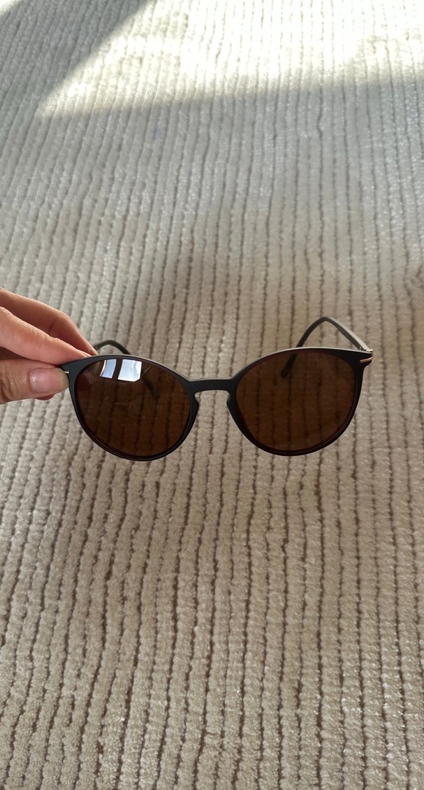 Koyu kahverengi çerçeveli camı da kahverengi , şık çerçeveli güneş gözlüğü. Markası latte hiç bir sorunu yoktur