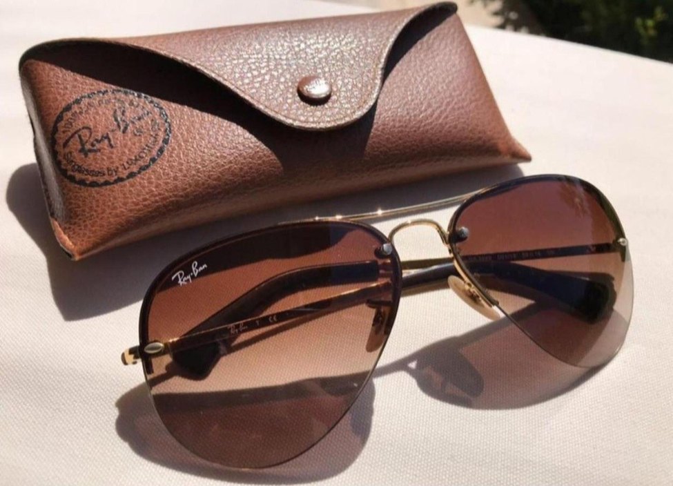 Parlak kahverengi lenslere ve tokalı tasarıma sahip Ray-Ban kadın güneş gözlüğü. Klasik ve çağdaş stil, kahverengi kılıf ile birlikte. ️