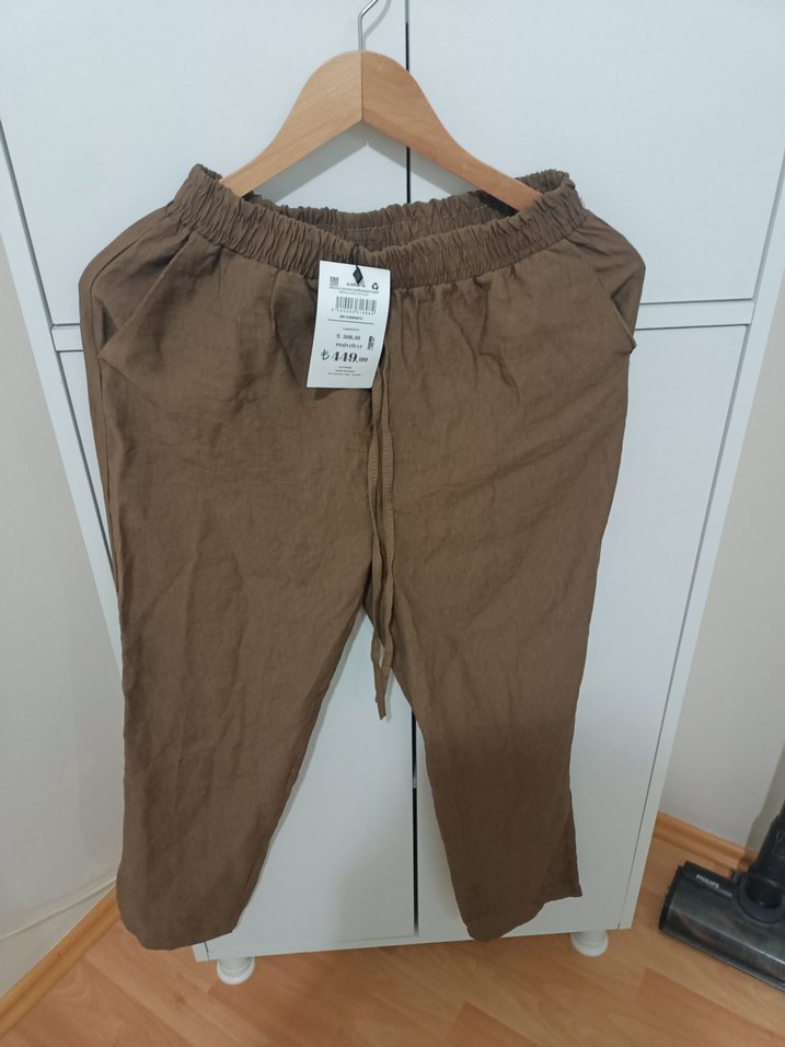 armalife kahverengi havuç pantolon. Elastik bel bandı ile rahat ve şık, günlük kullanıma uygun.