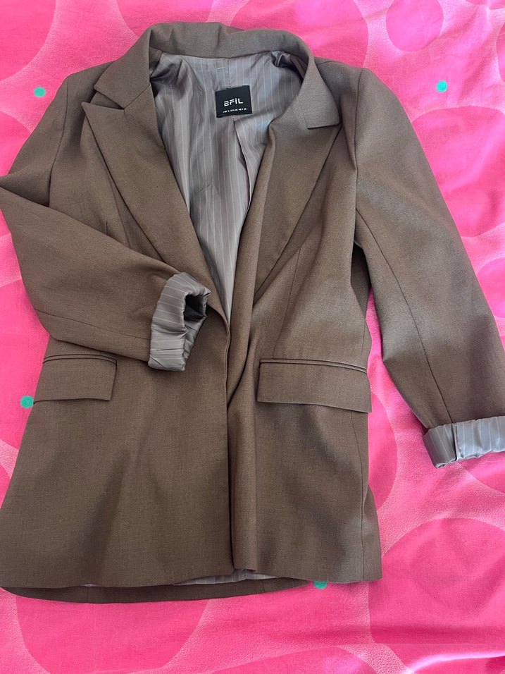 Kahverengi , düğmeli midi blazer ceket. Uzun kollu, regular fit ve notched yaka detaylıdır. Ofis veya günlük kullanıma uygundur. Sentetik kumaştan üretilmiştir.