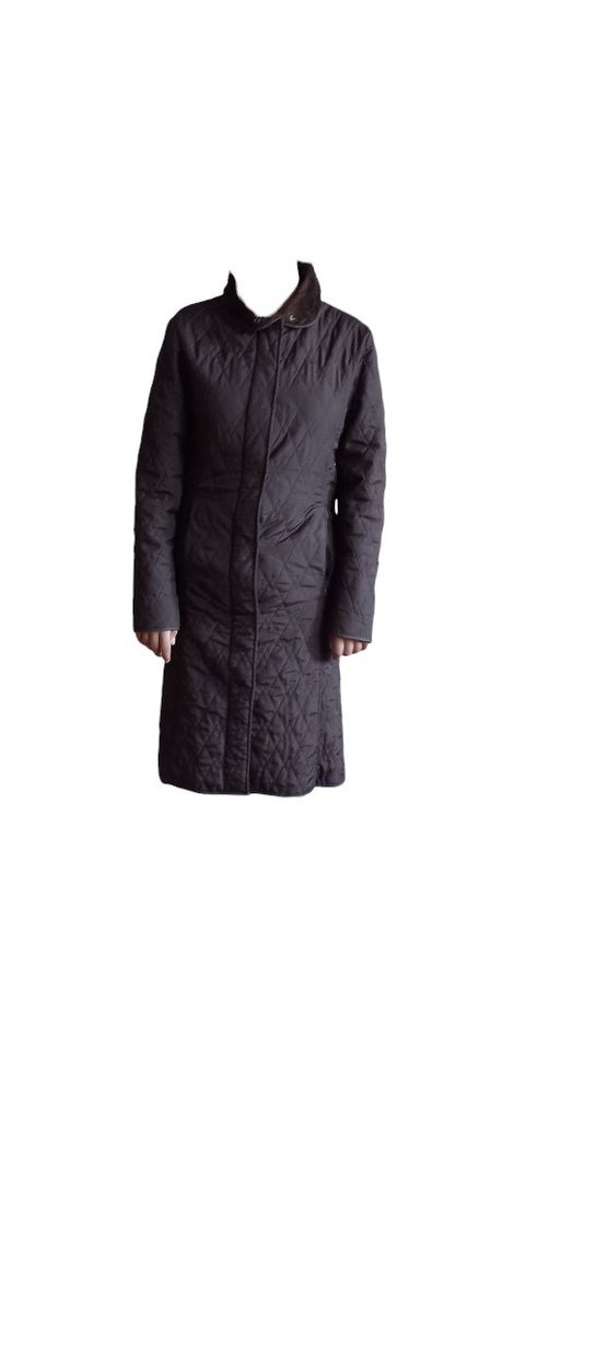 Bu kadın kışlık ceket, normal kesim, uzun kollu ve kesik yaka detayına sahiptir. Keten kumaştan yapılmış, koyu kahverengi renkte ve kürk detaylıdır. Minimalist gotik tarzda, günlük kullanıma uygundur.