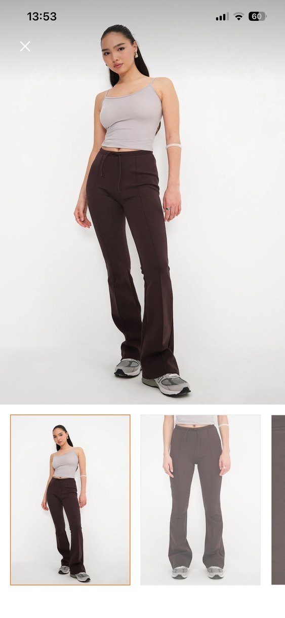 Kadınlar için kahverengi, midi boy, sentetik kumaştan yapılmış, sokak stili ve günlük kullanım için uygun, vücuda oturan pantolon. ️