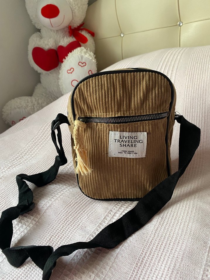 Kahverengi kadın omuz çantası, tokalı ve ön fermuarlı cepli tasarıma sahiptir. Yumuşak sentetik kumaştan üretilmiş, siyah ayarlanabilir askılıdır. Günlük kullanıma uygundur.