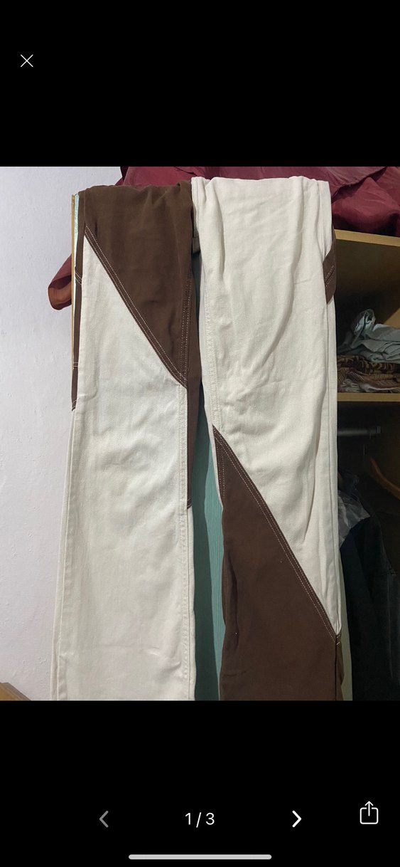 Kemer detaylı, kahverengi ve beyaz renklerde, regular fit, sentetik kumaştan yapılmış günlük kullanıma uygun street wear kadın pantolon.