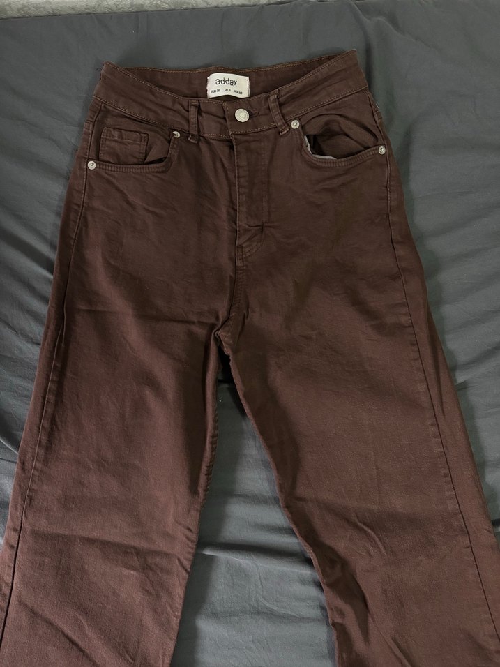 Koyu kahverengi pantolon, normal boy ve rahat kesimlidir. Günlük kullanıma uygun, desen içermeyen rahat tarzda tasarlanmıştır.