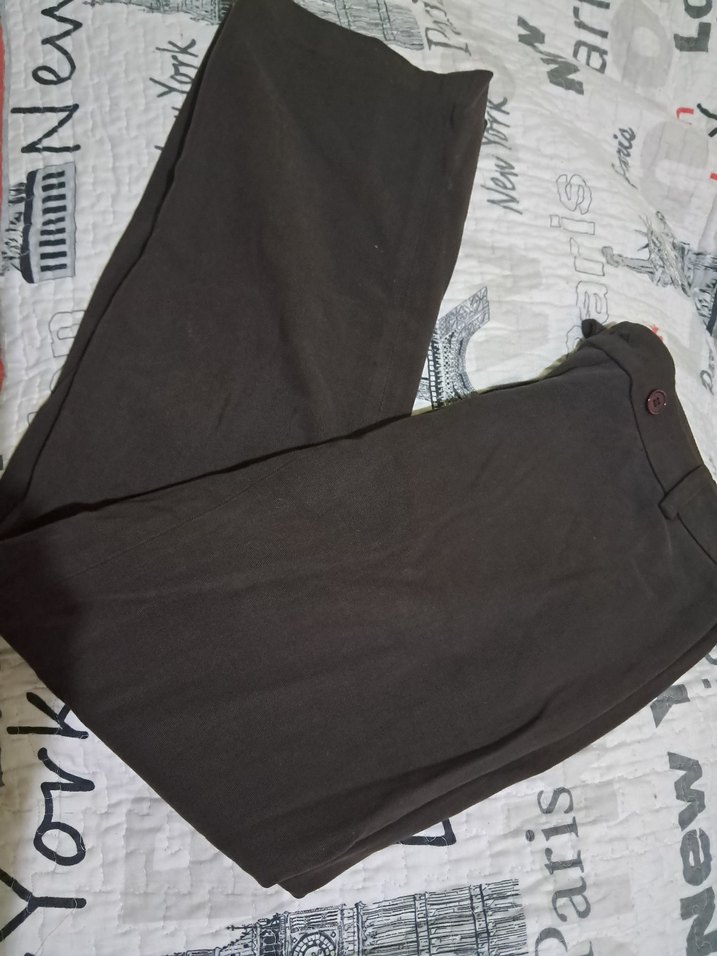 Kahverengi, midi boy, regular kesim kadın pantolon. Kemer detaylı ve koyu renkli, günlük rahat kullanıma uygun.