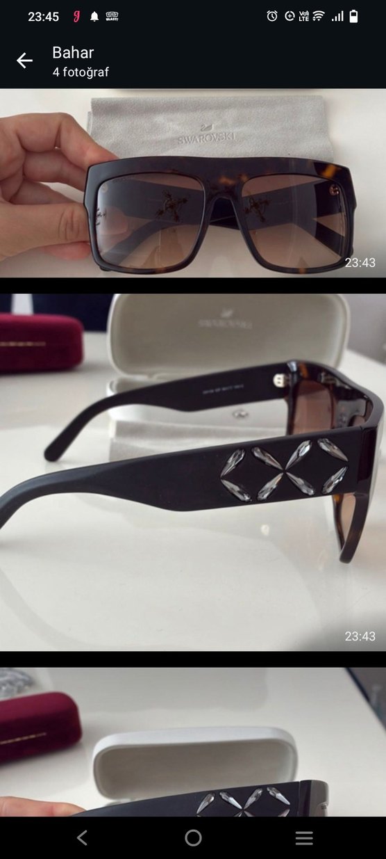 Kahverengi kadın gözlükleri, yanlarında parlak taş detayları ve koyu camlarla. Çağdaş, klasik tarzda, trend günlük görünüme uygun. ⏰