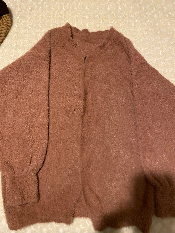 Yumuşak ve sıcak dokulu, pembe , bol kesim uzun kollu ve yuvarlak yaka hırka