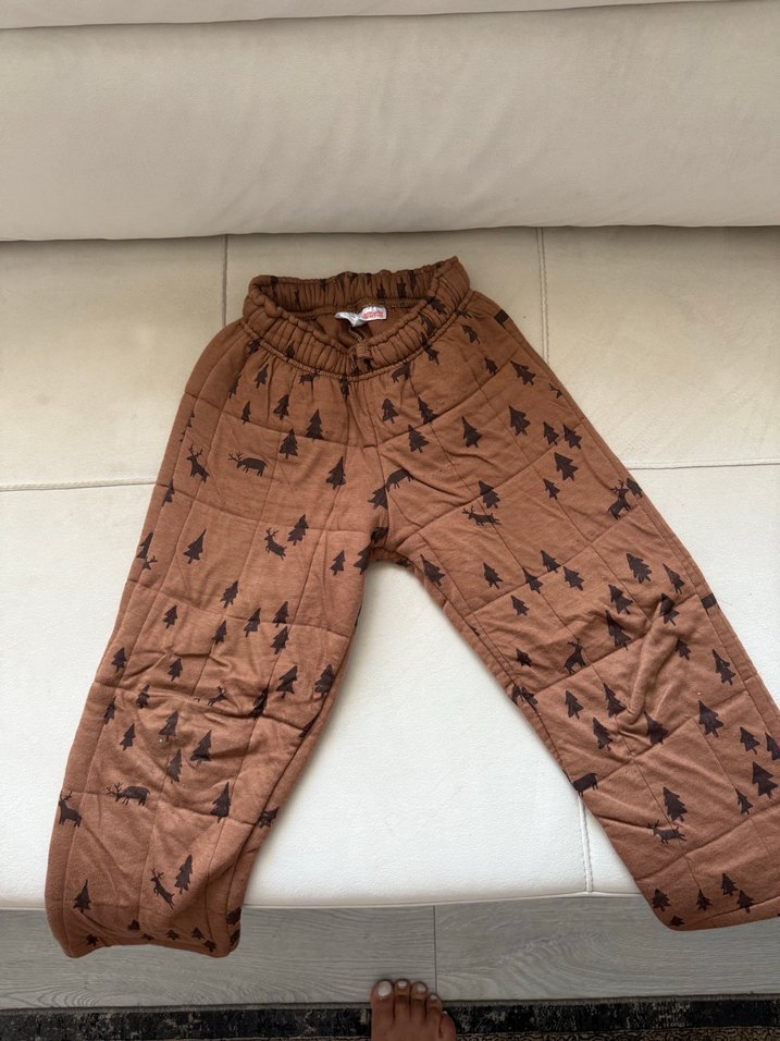 Kahverengi, yumuşak kumaştan kadın pantolon. Bol kesim, pile detaylı ve midi boyda. Sokak stilinde, rahat ve günlük kullanım için uygun.