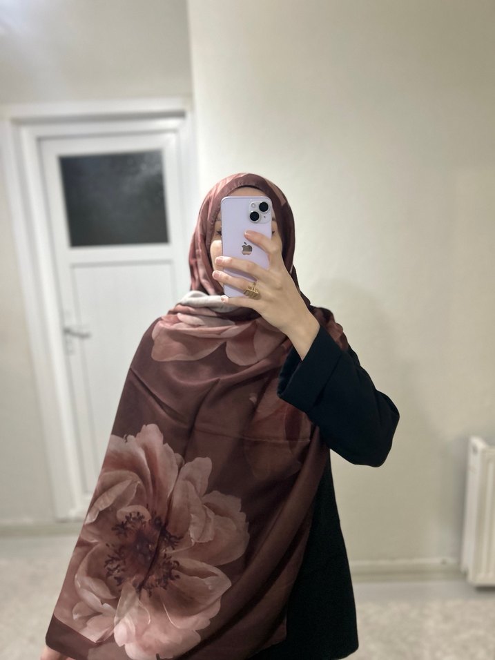 Koyu kahverengi, kadın şal, dökümlü tarzda büyük çiçek desenli, mütevazı ve bohem sokak stili için uygun. Kayma yapmaz