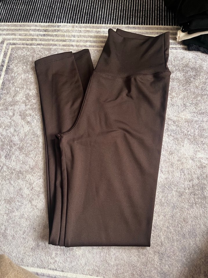 Kahverengi, düz, kadın spor tayt, midi boy, sentetik yumuşak kumaştan, günlük sokak stiline uygun rahat bir tasarıma sahip. ♀️
