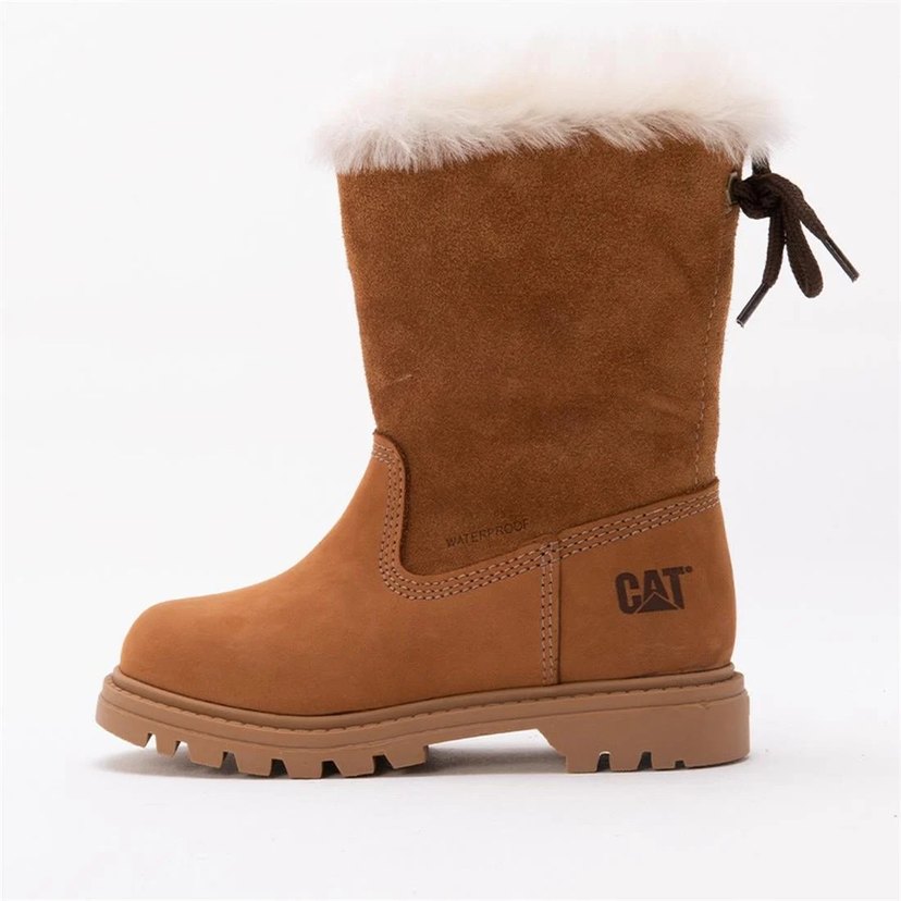 Kahverengi süet kadın bot, kürklü detaylı ve blok topuklu. CAT markalı, su geçirmez ve rahat, dış mekan için uygun Ayaklarını küçük olduğu için kullanamıyoruz tertemiz ürün .