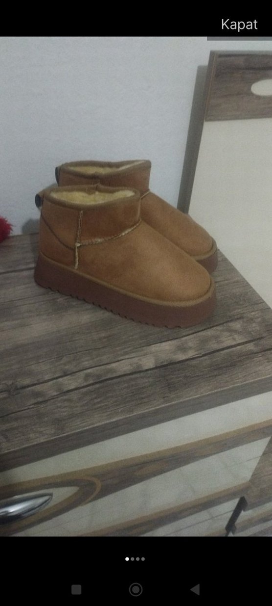 Kahverengi süet kadın botları, dolgu topuklu ve kürklü detaylıdır. Parlak görünümlü, desensiz ve rahat tasarımıyla günlük kullanıma uygundur.