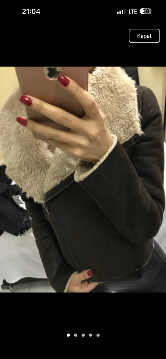 Kahverengi süet, kürklü detaylı, oturmalı kesim kadın kış ceketi. Uzun kollu, notched lapel yakalı, günlük kullanıma uygun goth tarzı.