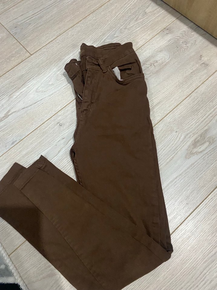 Kahverengi süet kumaştan, midi boy, kemerli ve regular fit kadın pantolon. Günlük kullanım için uygun, rahat bir sokak stili sunar.