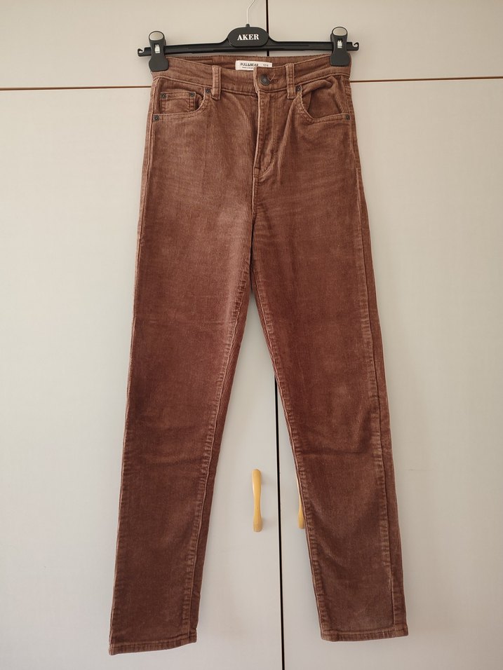 Kahverengi süet kumaştan yüksek bel pantolon. hiçbir kusuru yoktur. Yalnızca 2 kez giyildi.