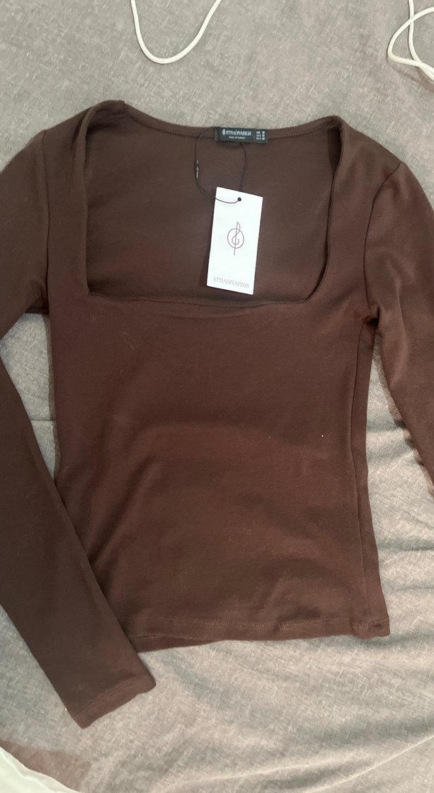 iadeye gidemediğim için satıyorum Kahverengi, süet kumaştan yapılmış, uzun kollu ve bisiklet yaka, vücuda oturan kadın bluz. Günlük ve sokak stili için uygun, desensiz tasarım.