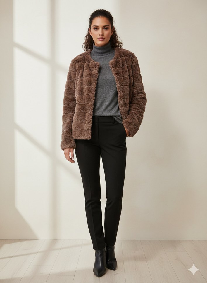 Kahverengi Kadın Suni Kürk Ceket
