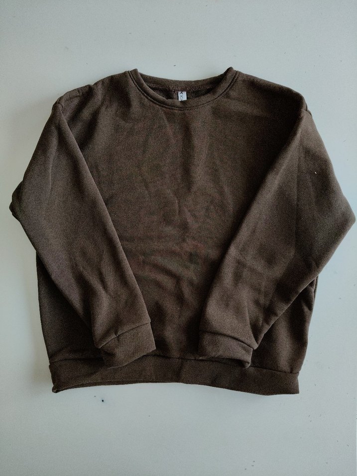 Yuvarlak yakalı, uzun kollu, yumuşak ve sıcak kumaştan yapılmış kahverengi kadın sweatshirt. Salaş kesimiyle günlük sokak stili için uygundur.