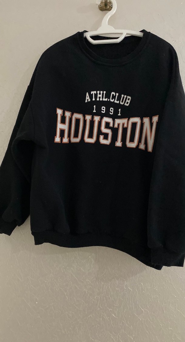 Pamuklu, kahverengi, uzun kollu, bol kesim sweatshirt. Üzerinde "1991 HOUSTON ATHL.CLUB" baskısı detayları bulunur.