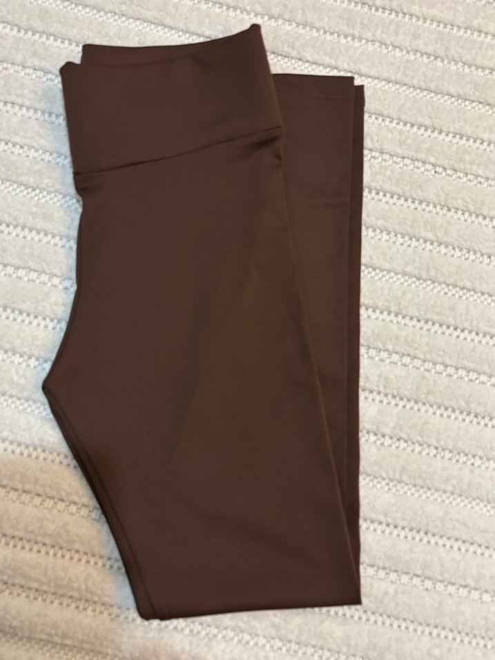 Esnek sentetik kumaştan yapılmış, kahverengi, beli lastikli, normal boyda dar kesim tayt. Günlük kullanıma uygun sade hiç kullanılmadı temiz deforme yok yüksek bel