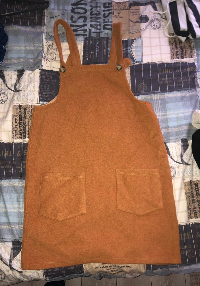 İki ön cepli, düğmeli ayarlanabilir askılı koyu kahverengi kadın tulum , desensiz sade tasarımla.