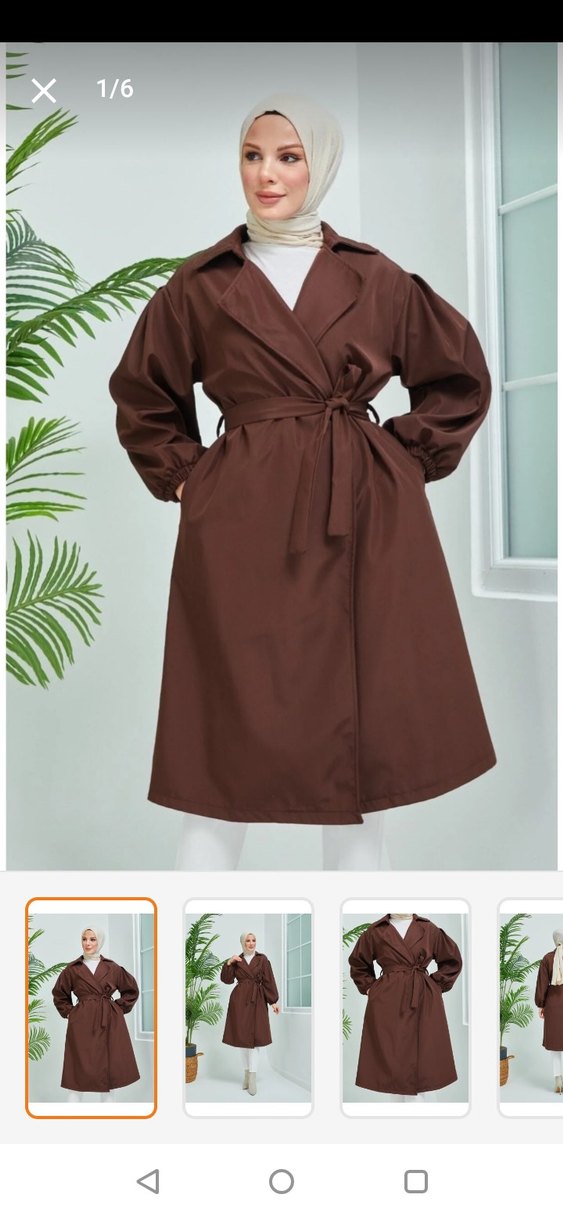 Kahverengi uzun trençkot, kemerli ve bol kesimdir. Sentetik kumaştan üretilmiş, yakalı ve uzun kolludur. Rahat sokak stiline uygundur. Yeni alındı bedeni uyumlu gelmedi Std beden ölçüleri ve ürün bilgileri ekli