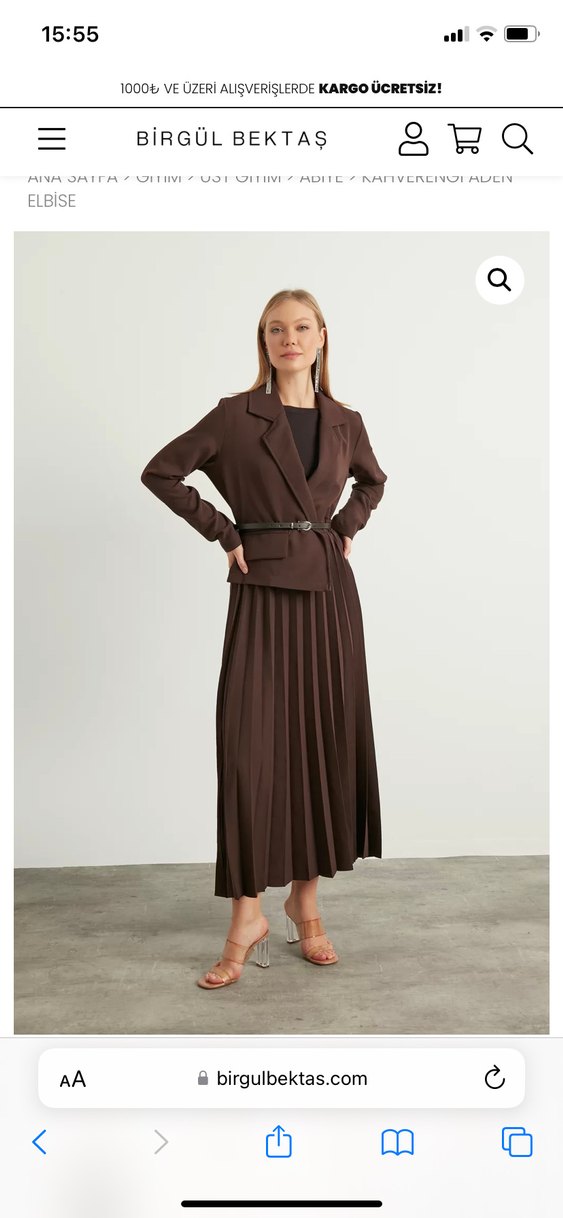Kahverengi Kadın Uzun Pilili Blazer Ceket Elbise