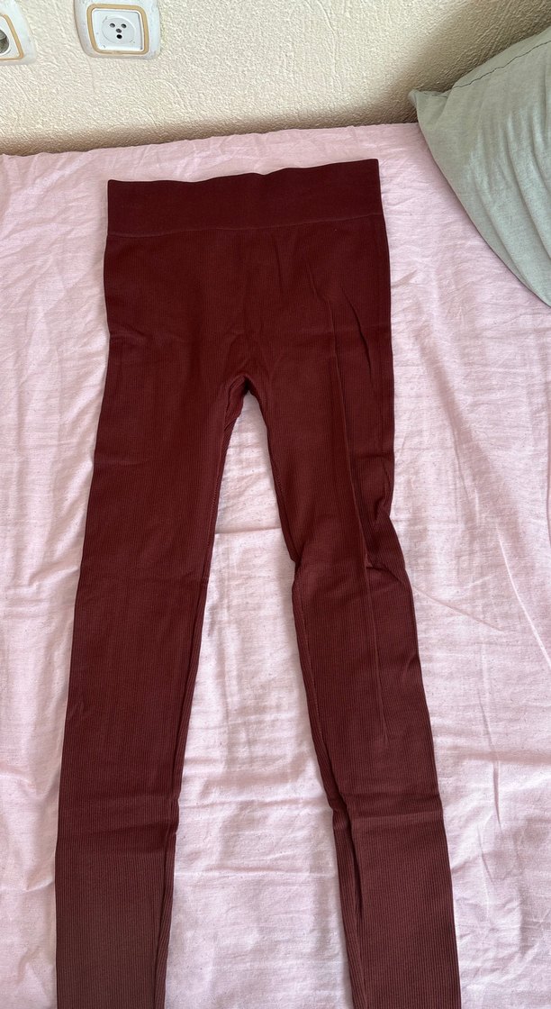 kahverengi yüksek bel, elastik bantlı, sentetik kumaştan yapılmış kadın tayt. Günlük kullanım ve spor tarzına uygundur. ♀️