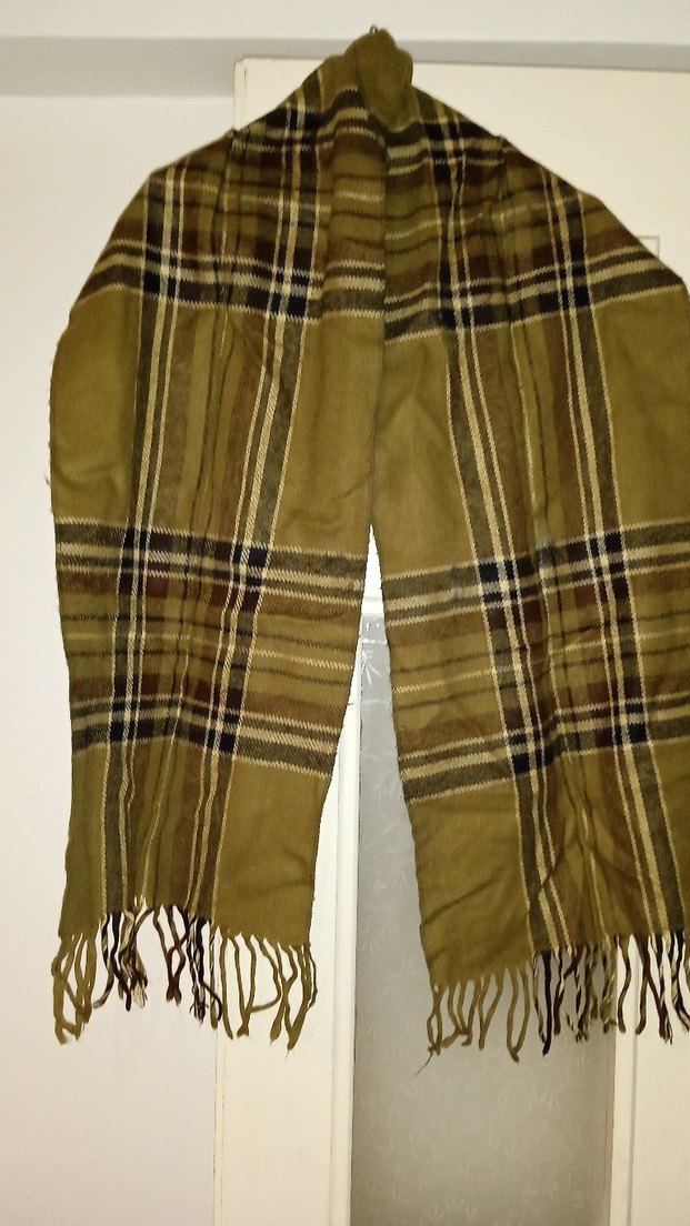 Kahverengi yün kadın şal, salaş kesimi ve klasik ekose deseniyle rahat bir sokak stili sunar. Uçları püsküllüdür ve sıcak tutar. Çeşitli ürünler için diğer ilanlarıma da bakınız.