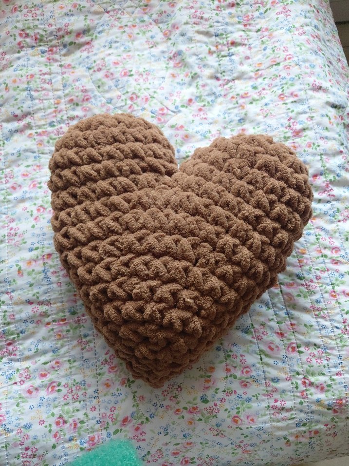 Yumuşak, dokulu kumaştan yapılmış kahverengi kalp şeklinde yastık. Her odaya sıcaklık katmak için uygundur. ❤️